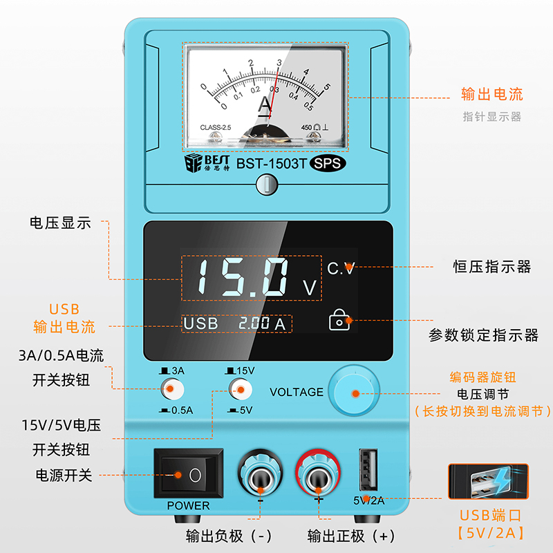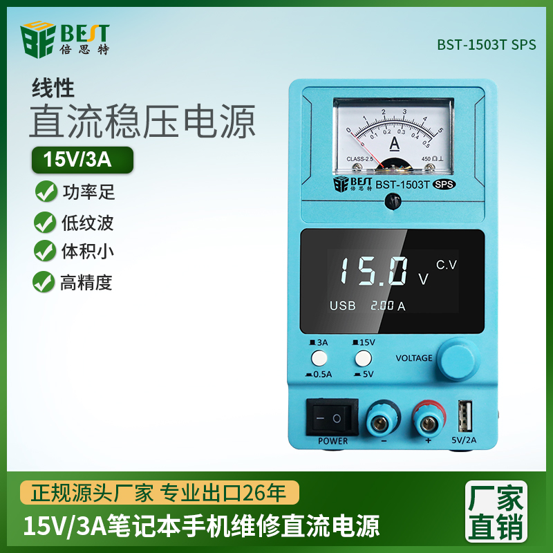 返回當(dāng)前位置: 首頁 / 產(chǎn)品中心 / BST-1503T SPS 線性直流穩(wěn)壓電源 固測可調(diào)直流穩(wěn)壓電源15V/3A筆記本電腦手機(jī)維修電源