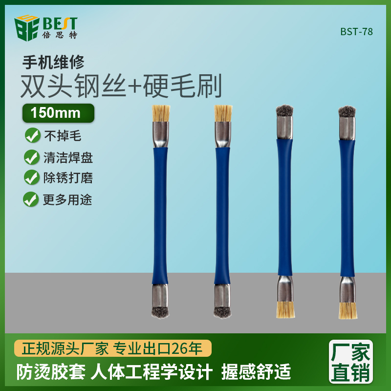 返回當(dāng)前位置: 首頁(yè) / 產(chǎn)品中心 / BST-78 雙頭鋼絲硬毛刷 手機(jī)主板IC焊盤清潔除塵不脫毛 打磨除銹鋼絲刷