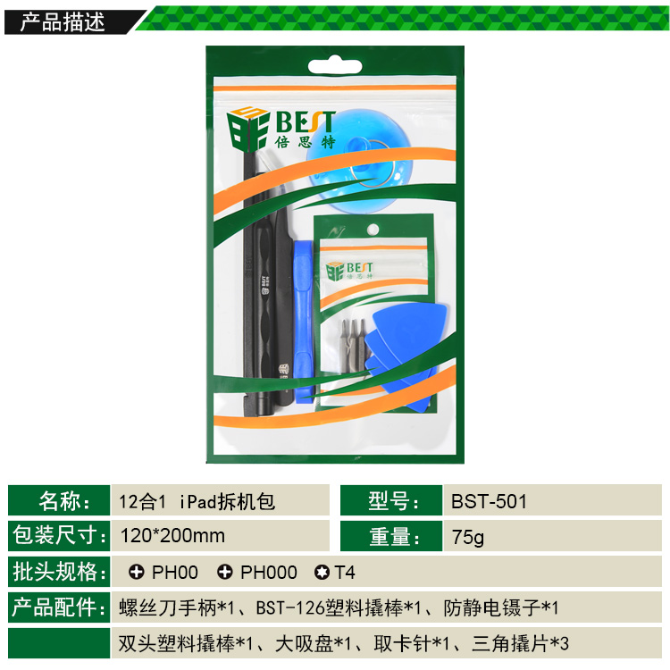 返回當前位置: 首頁 / 產(chǎn)品中心 / BST-501 12合1 iPad拆機包 ipad維修工具套裝