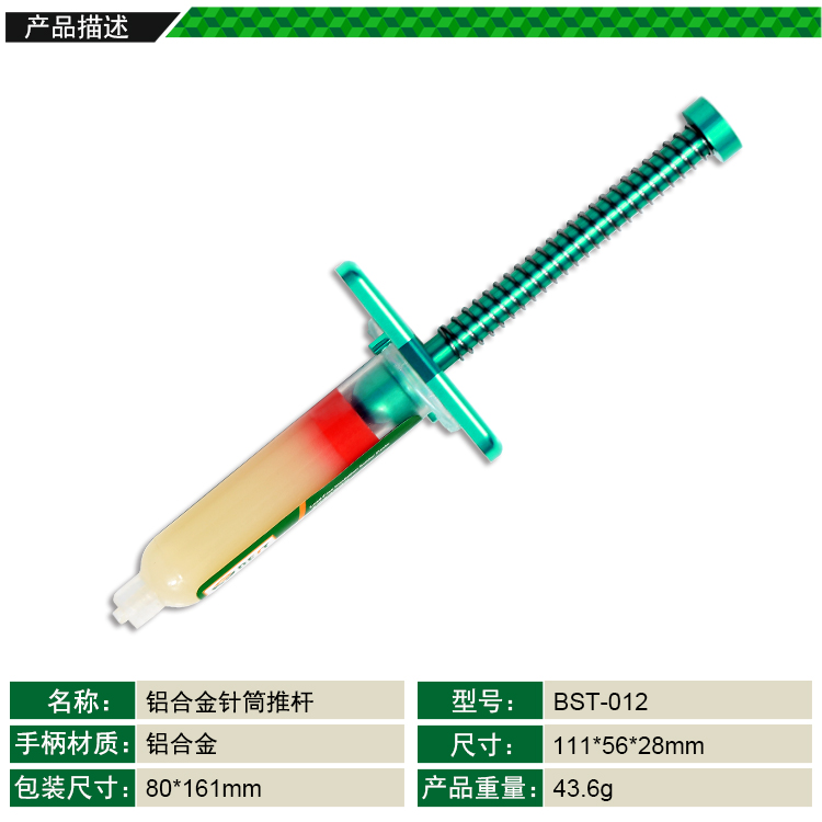 返回當前位置: 首頁 / 產(chǎn)品中心 / BST-012 鋁合金針筒助推桿 焊油綠油錫漿助推桿