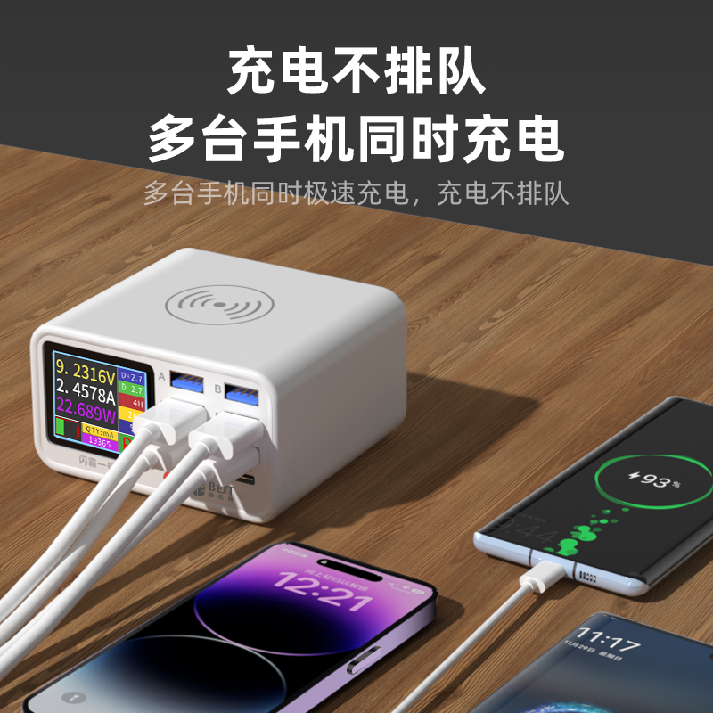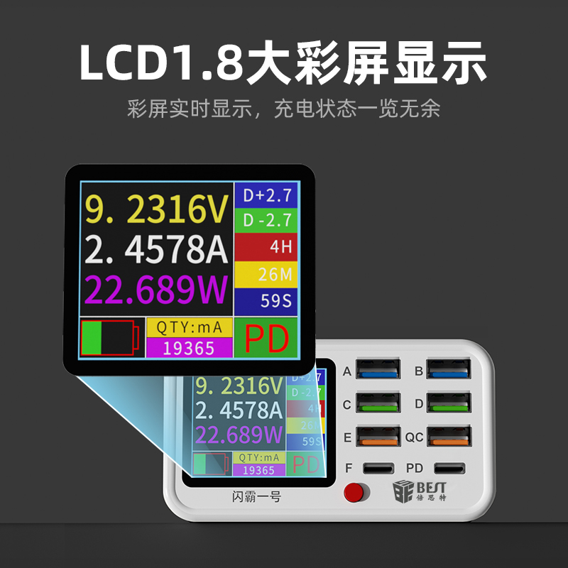 BST-S1 閃霸一號(hào) 多功能8口可視化USB充電器 極速快充 無線快充 檢測(cè)維修一體數(shù)顯充電器