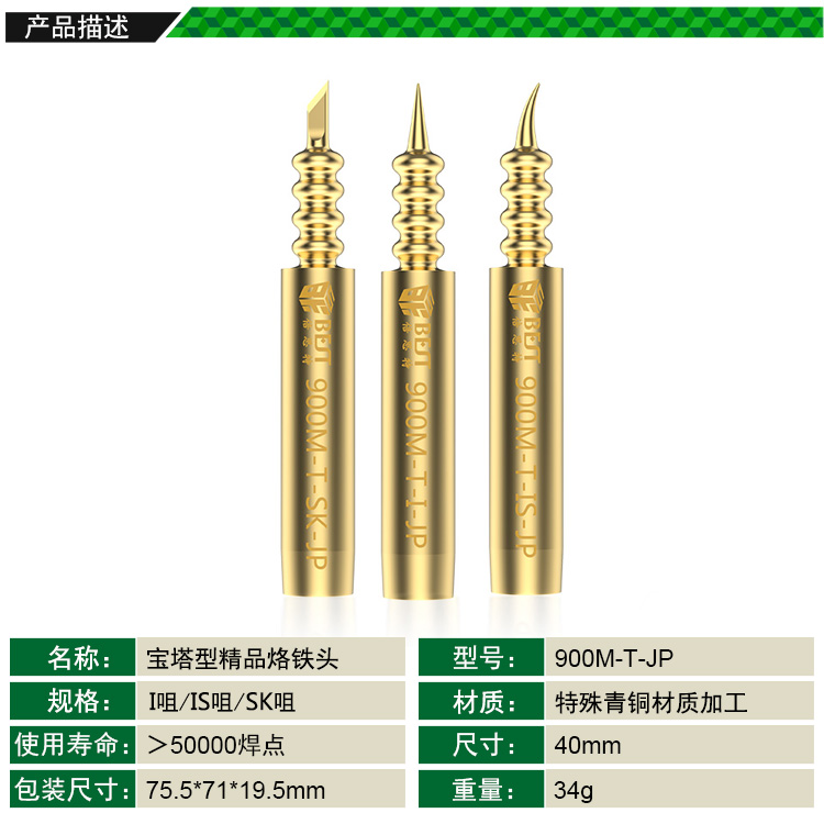 900M-T-JP 精品烙鐵頭 936系列電焊臺焊接頭 寶塔型936烙鐵頭 特殊青銅材質(zhì)烙鐵咀