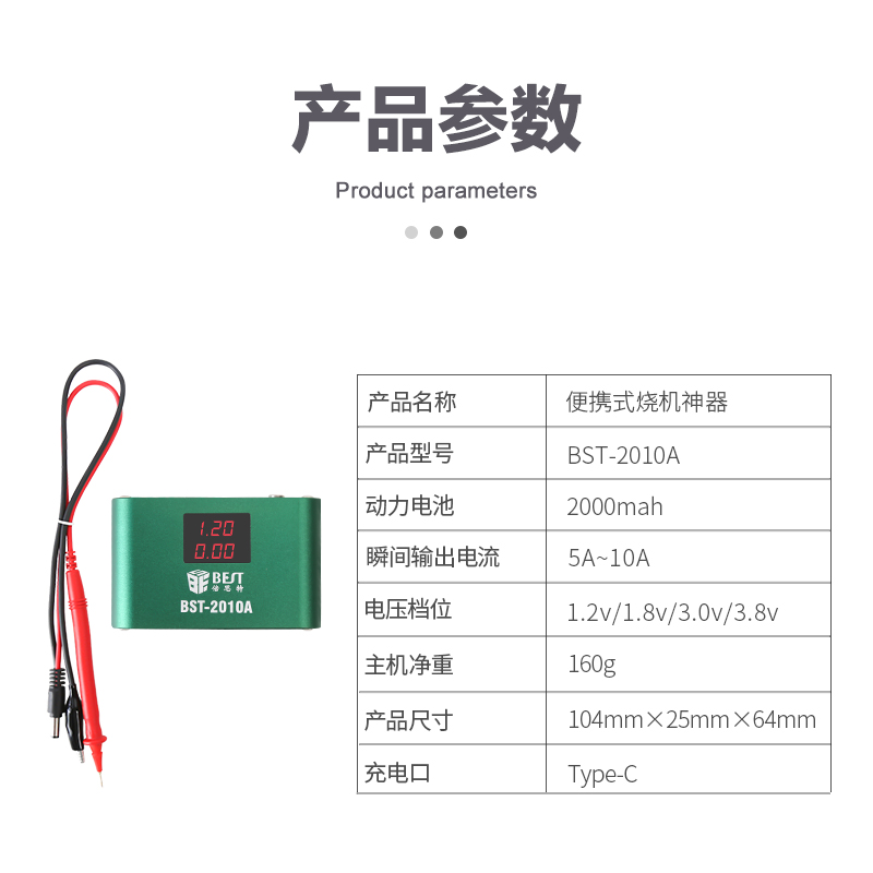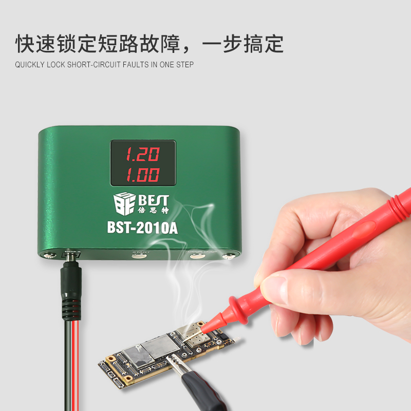 BST-2010A 燒機神器 四檔可調(diào)10A電流快速鎖定超長待機三位數(shù)顯 超便攜防燒主板修復手機電腦主板短路檢測器