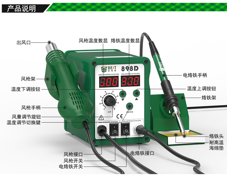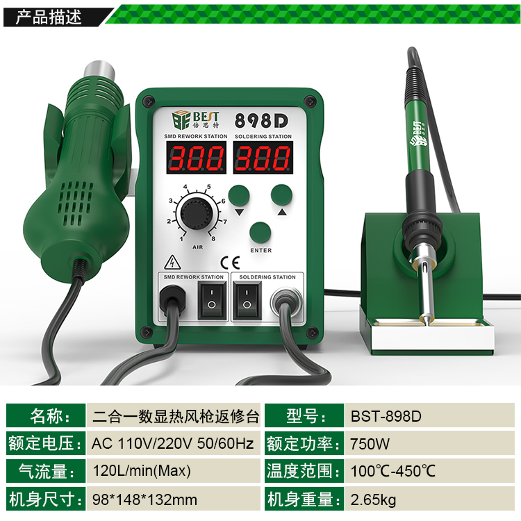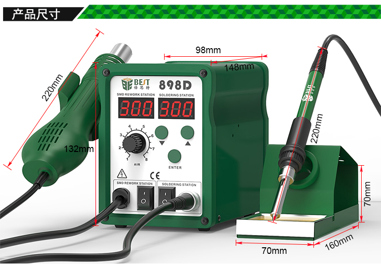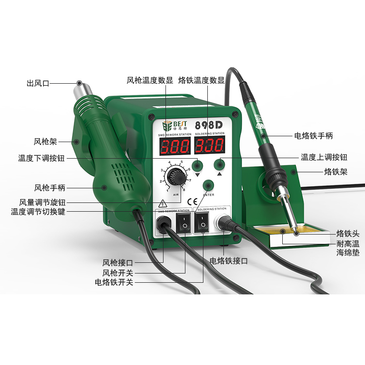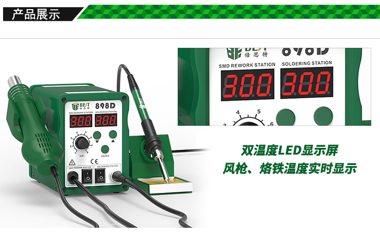 返回當前位置: 首頁 / 產(chǎn)品中心 / BST-898D 二合一雙數(shù)顯智能無鉛螺旋式熱風槍+焊臺