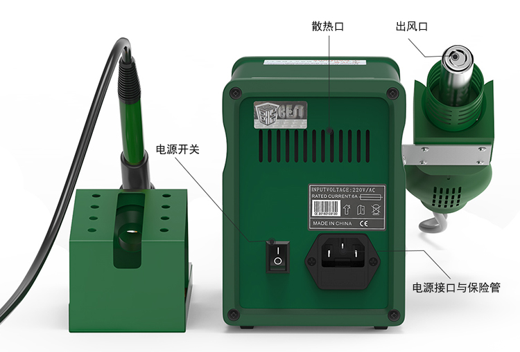 ? 產(chǎn)品名稱: 二合一雙數(shù)顯智能無鉛螺旋式熱風槍+焊臺