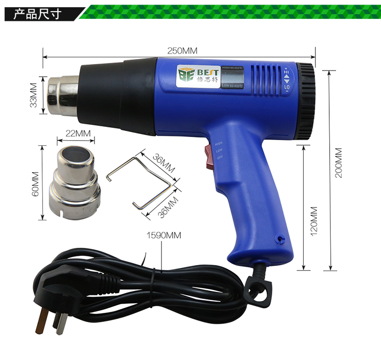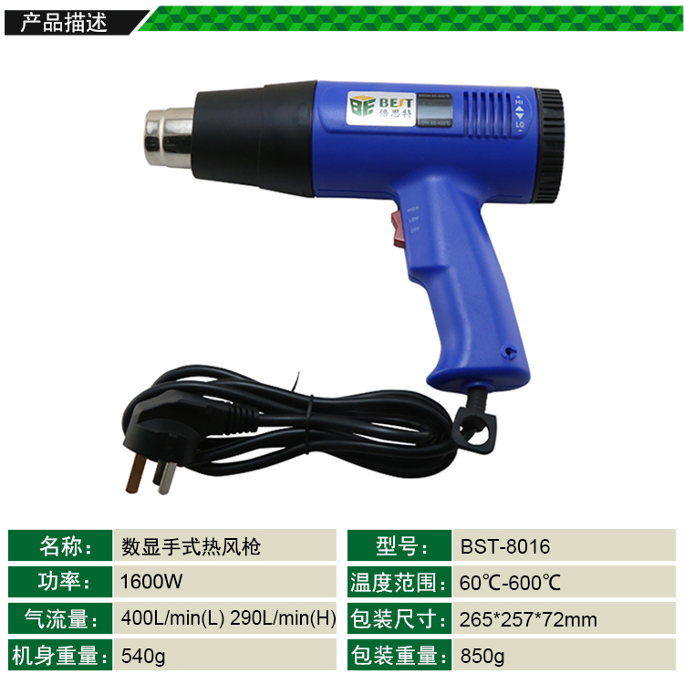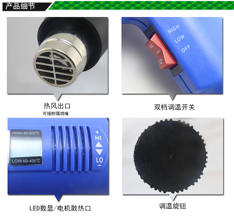 ? 產(chǎn)品名稱: LED數(shù)顯手持式熱風(fēng)槍