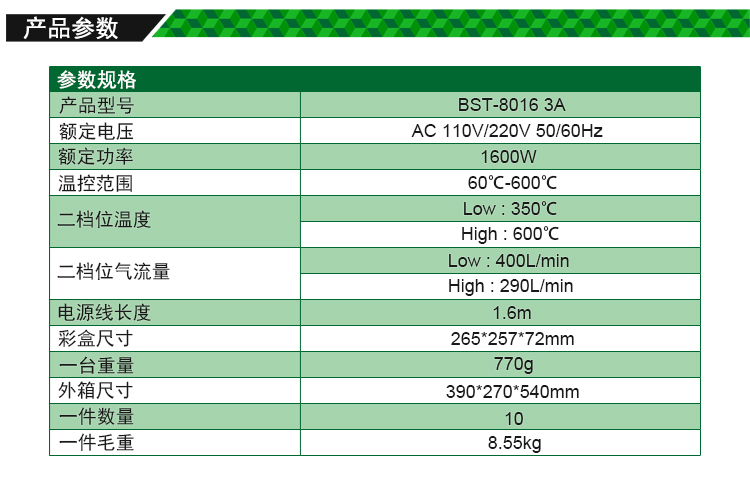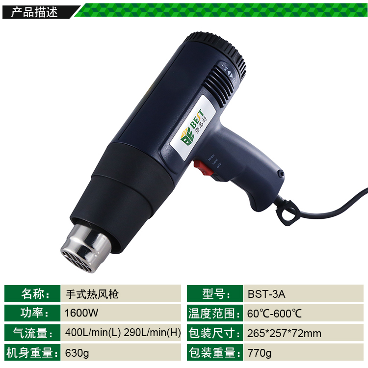 返回當(dāng)前位置: 首頁(yè) / 產(chǎn)品中心 / BST-8016 3A 手式熱風(fēng)槍 1600W