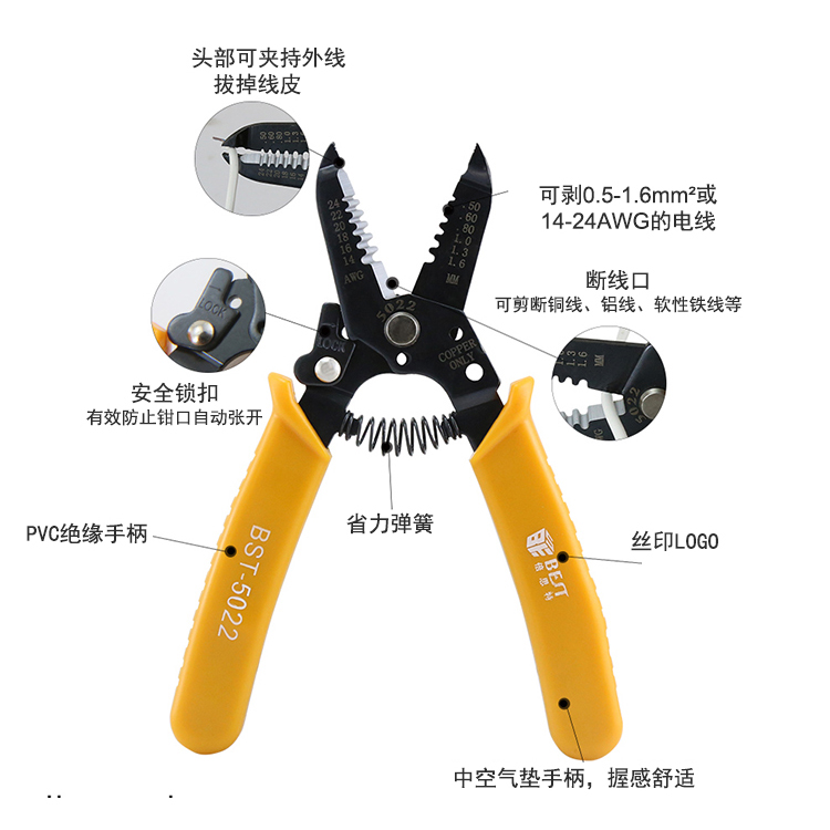 返回當(dāng)前位置: 首頁(yè) / 產(chǎn)品中心 / BST-5022 剝線鉗 電線鉗 多功能剝線鉗