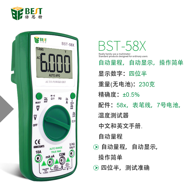 BST-58X 多功能數(shù)字萬用表 自動量程 四位半背光顯示屏 智能防燒