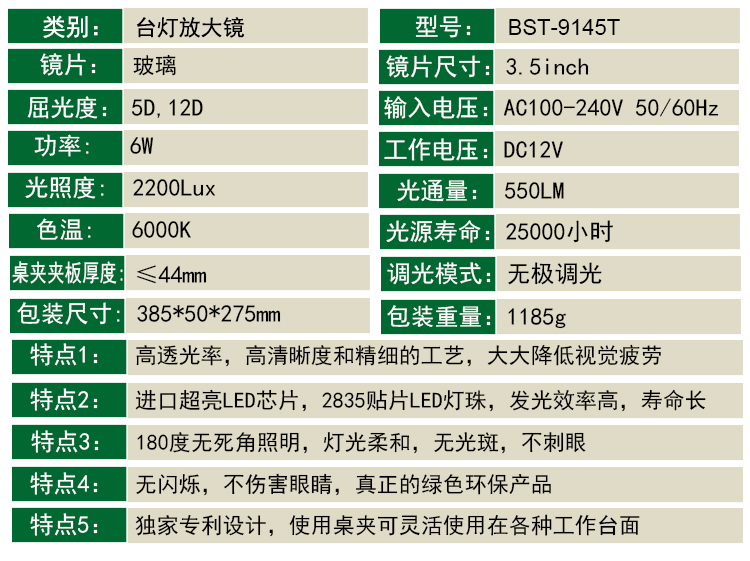 返回當前位置: 首頁 / 產(chǎn)品中心 / BST-9145T 黑色可調(diào)亮度LED放大鏡臺燈