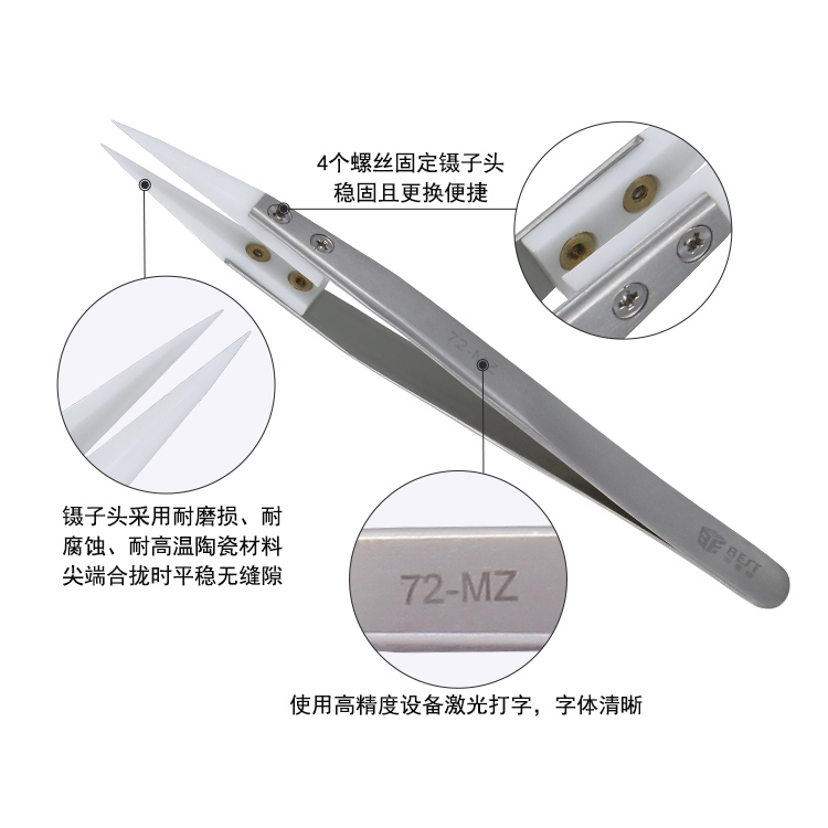 返回當前位置: 首頁 / 產品中心 / BST-72-MZ 陶瓷頭不銹鋼鑷子 陶瓷直鑷子不銹鋼手柄 耐酸 耐高溫無感鑷子