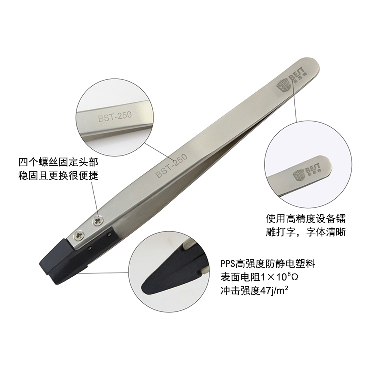 ? 產品名稱: 防靜電鑷子可換頭? 產品型號: BST-250? 產品類別: 鑷子系列