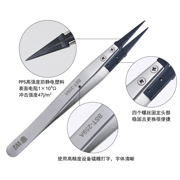 返回當(dāng)前位置: 首頁 / 產(chǎn)品中心 / BST-259A 防靜電鑷子可換頭 碳纖維塑料換頭鑷子