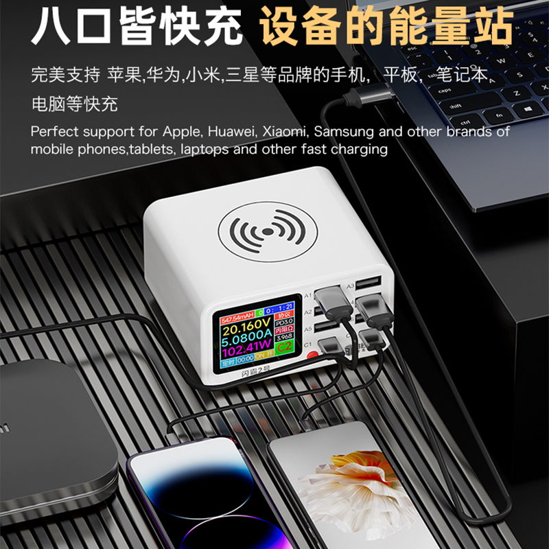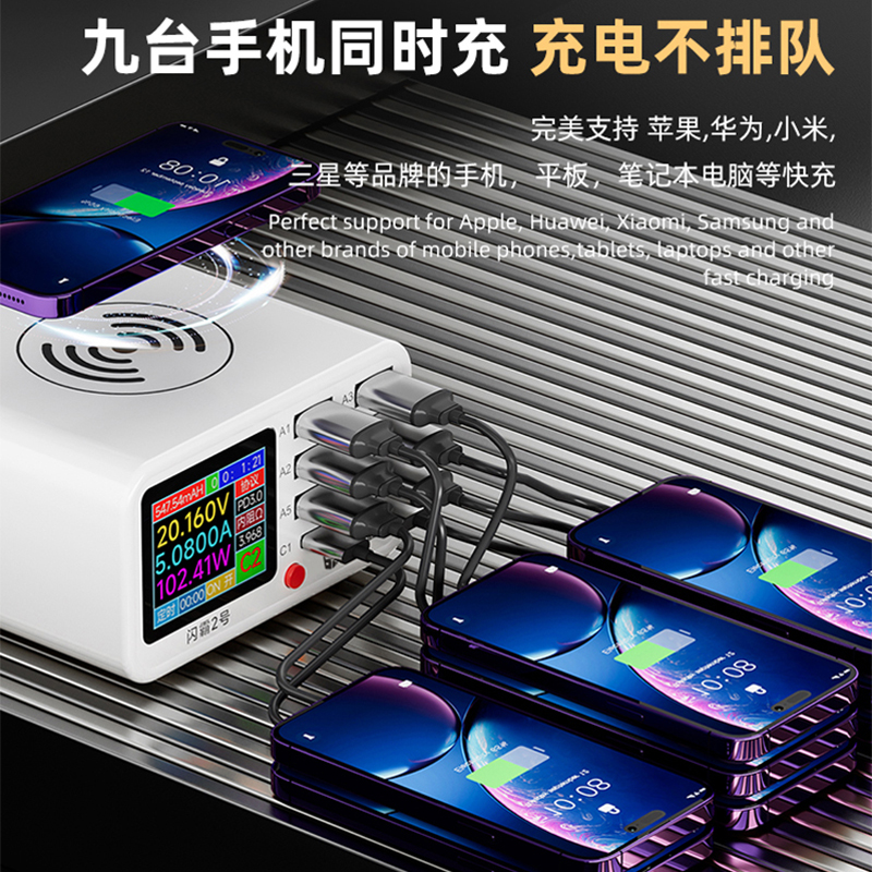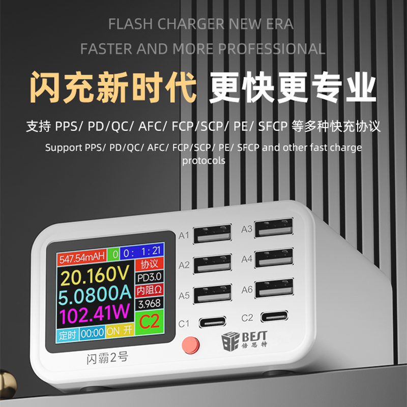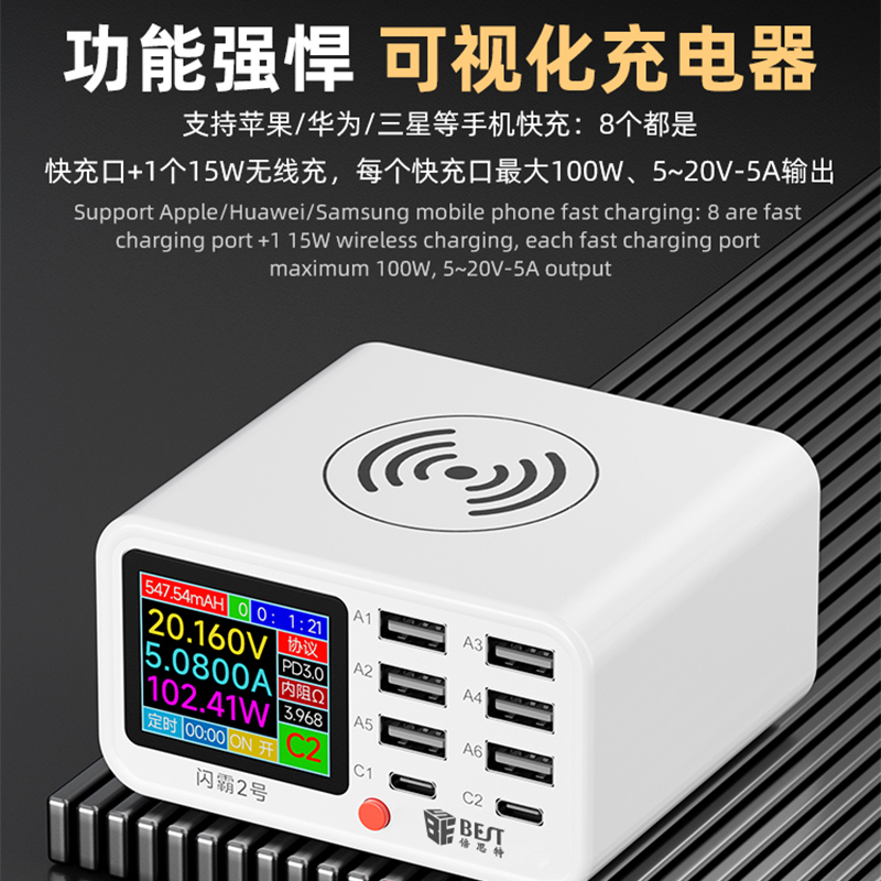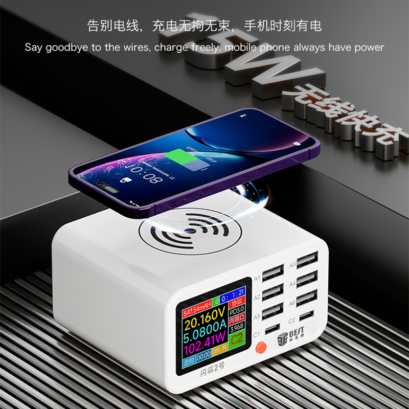 BST-S2 閃霸二號(hào) 多功能8口可視化USB充電器 極速快充 無線快充 檢測(cè)維修一體數(shù)顯充電器