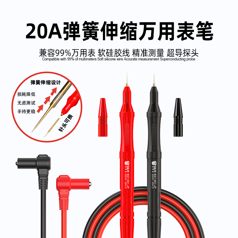 返回當(dāng)前位置: 首頁 / 產(chǎn)品中心 / BST-951-JP 彈簧式超導(dǎo)細(xì)尖表筆 萬用表表筆線 特尖鍍金彈簧針 防燙防凍硅膠線 20A大電流 表棒鍍金純銅特尖表針可換頭