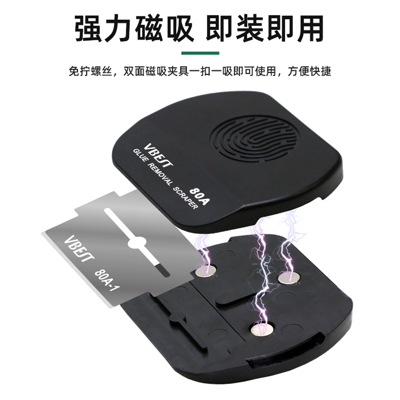 VBST-80B 磁吸雙面除膠鏟刀 維修9刀片合一芯片手機屏幕返修套裝 雙面刀片夾具除膠割膠磁性手柄 帶防割手指套