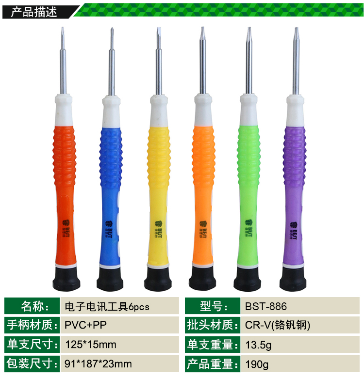返回當(dāng)前位置: 首頁 / 產(chǎn)品中心 / BST-886 電子電訊工具6pcs 螺絲套批 螺絲刀套裝