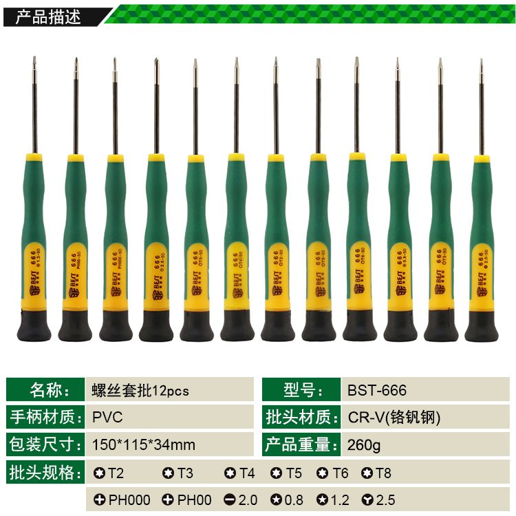 返回當前位置: 首頁 / 產(chǎn)品中心 / BST-666 螺絲套批12pcs 螺絲刀套裝