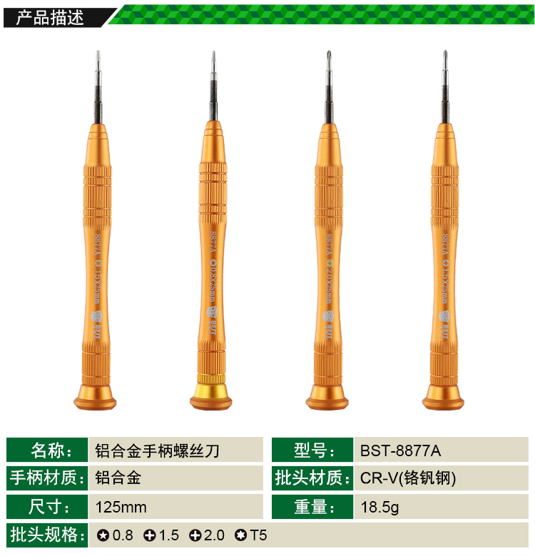 返回當(dāng)前位置: 首頁 / 產(chǎn)品中心 / BST-8877A 金色鋁合金手柄精密螺絲刀 鋁批