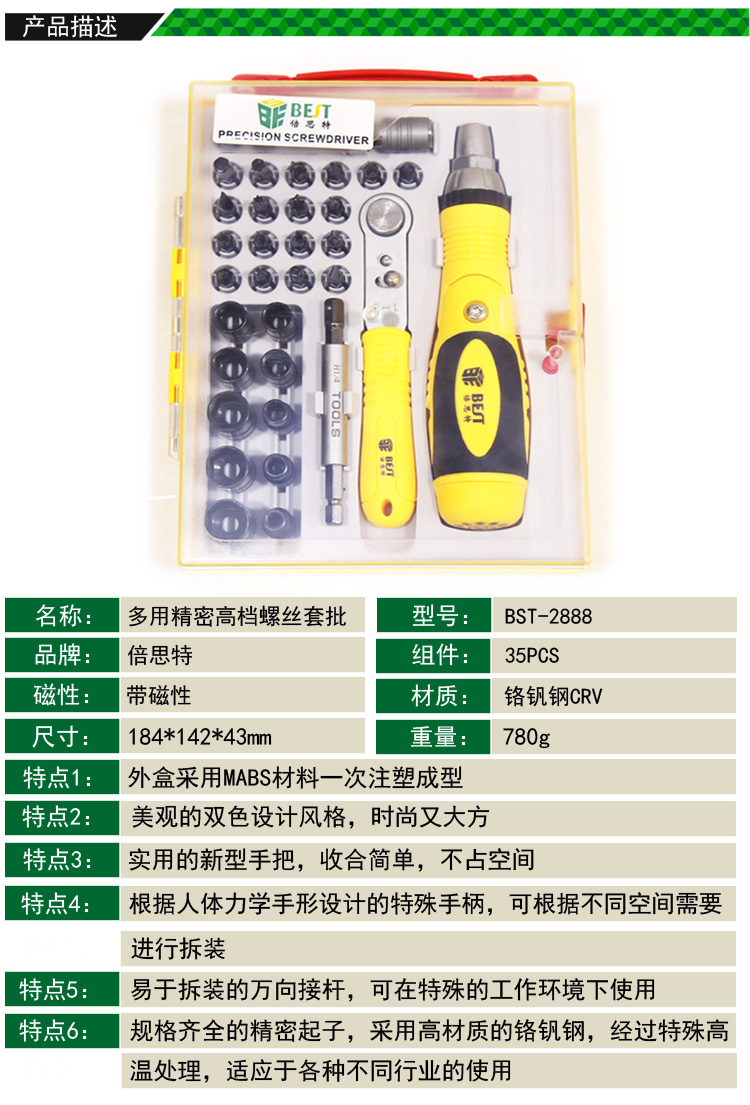 ? 產品名稱: 35件套 多用精密高檔螺絲起子套裝? 產品型號: BST-2888? 產品類別: 螺絲批系列