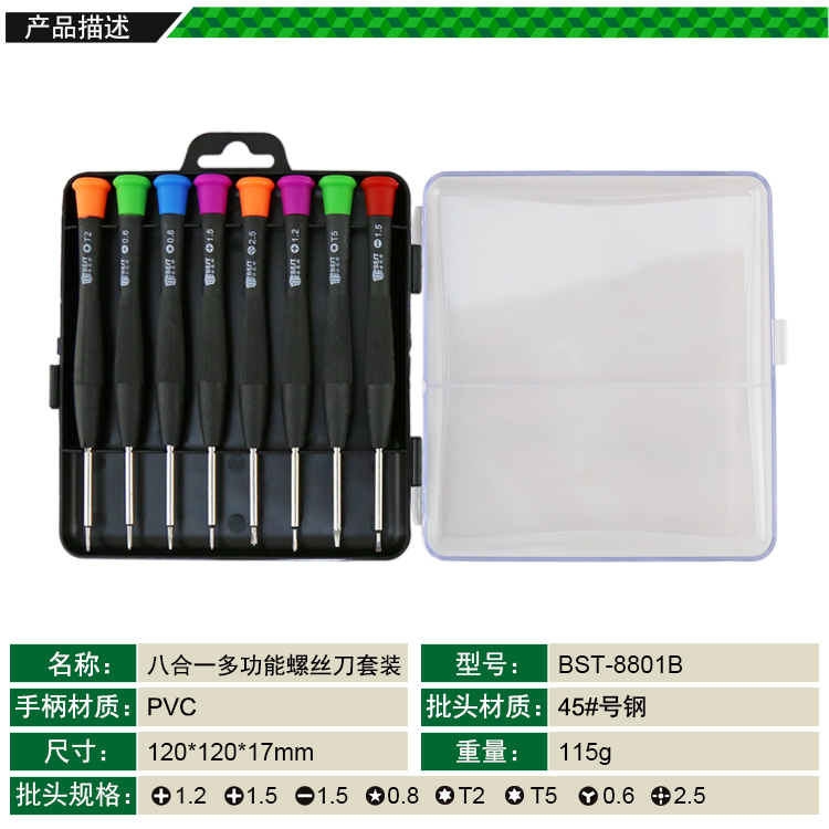 返回當(dāng)前位置: 首頁 / 產(chǎn)品中心 / BST-8801B 八合一多功能螺絲刀套裝