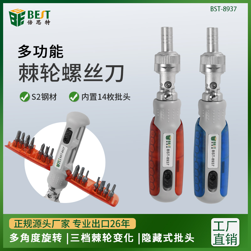 BST-8937 多功能棘輪螺絲刀14合一 家用維修螺絲拆卸工具 棘輪螺絲刀套裝多功能十字一字三角梅花頭起子電腦筆記本維修工具