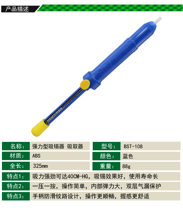 返回當(dāng)前位置: 首頁(yè) / 產(chǎn)品中心 / BST-108 吸取器 吸錫器(藍(lán))