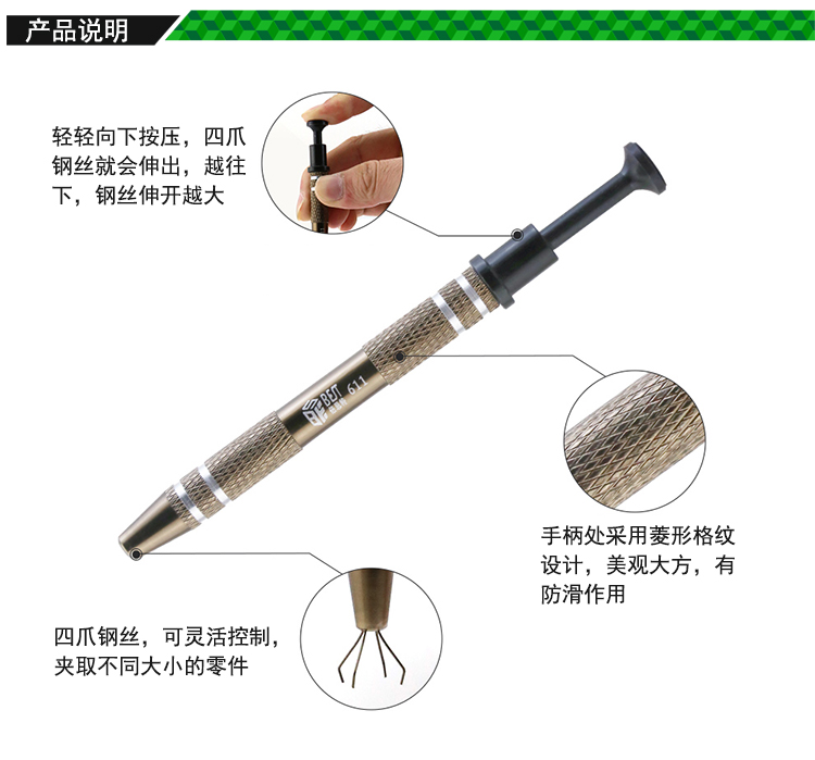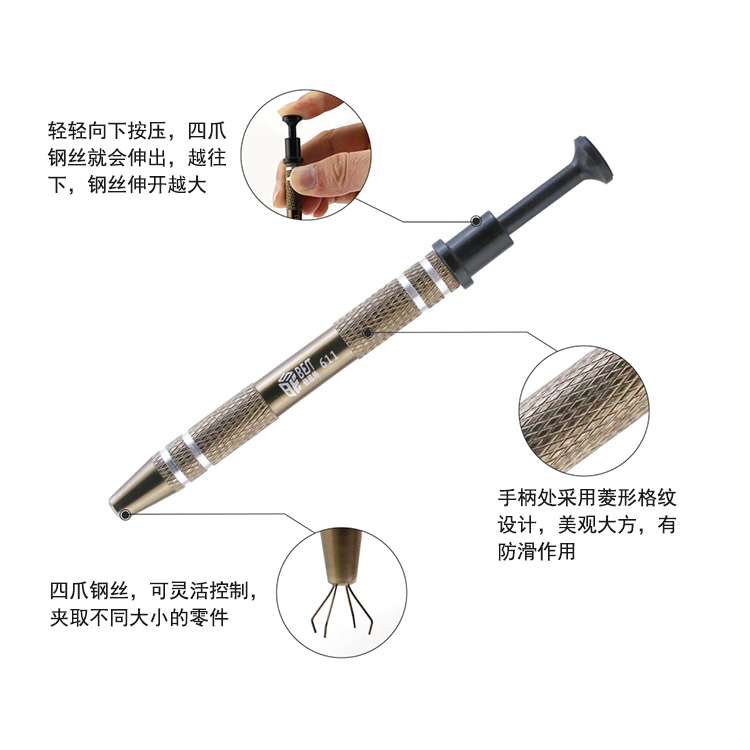 返回當前位置: 首頁 / 產(chǎn)品中心 / BST-611 零件抓取器 四爪取物器 IC抓取器