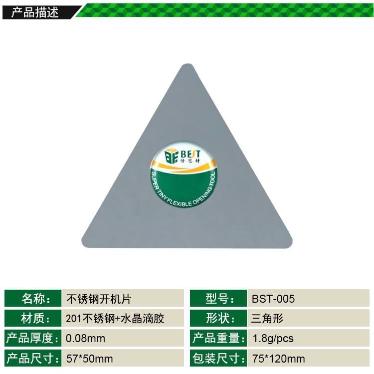 返回當(dāng)前位置: 首頁(yè) / 產(chǎn)品中心 / BST-005 不銹鋼開(kāi)機(jī)片(三角片)