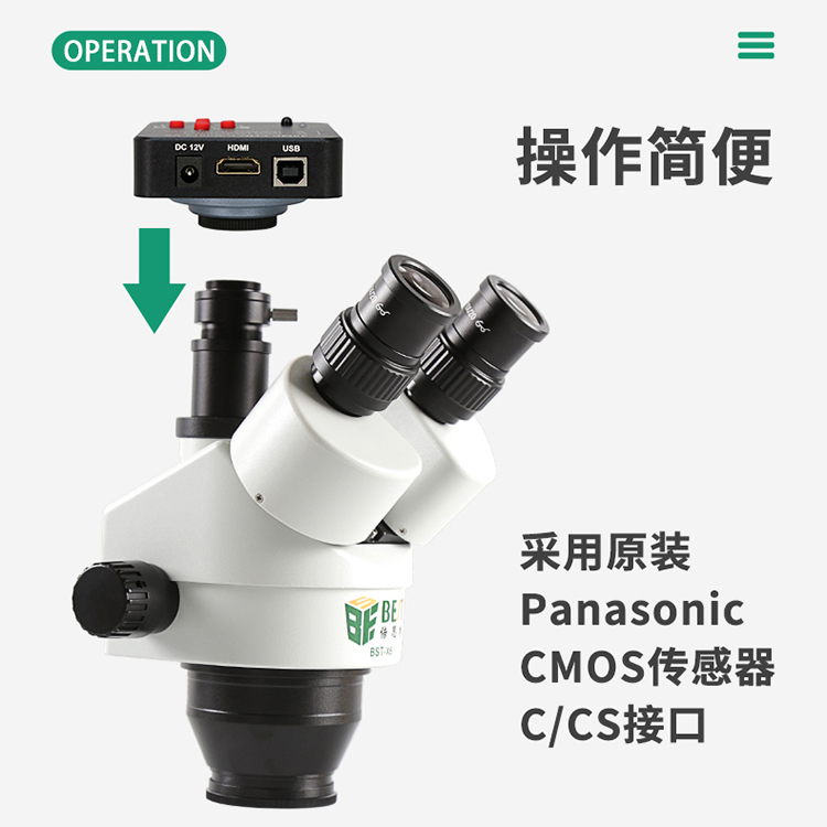 BST-3860 顯微鏡攝像機 黑色 高清視頻顯微鏡工業(yè)相機高清攝像頭 C/CS接口三目體視顯微鏡 主板珠寶芯片金屬檢測維修