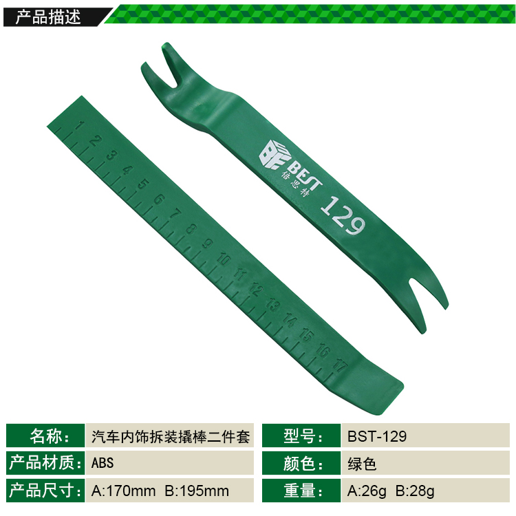 返回當前位置: 首頁 / 產(chǎn)品中心 / BST-129 汽車內(nèi)飾拆裝工具二件套 塑料大撬棒