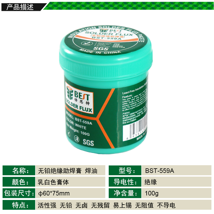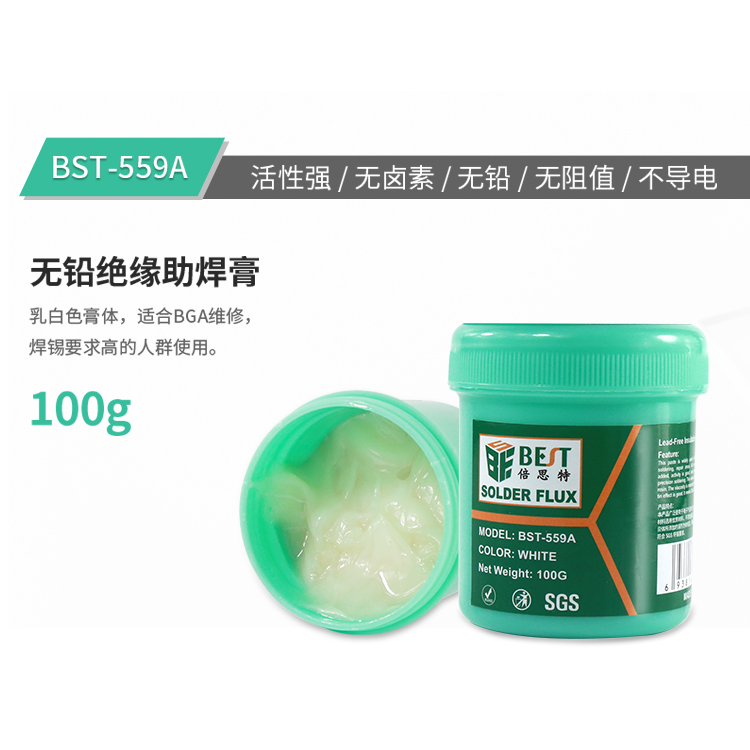 返回當(dāng)前位置: 首頁 / 產(chǎn)品中心 / BST-559A 無鉛絕緣助焊膏 BGA助焊膏 免洗維修松香 無鉛無鹵助焊劑焊油 100g