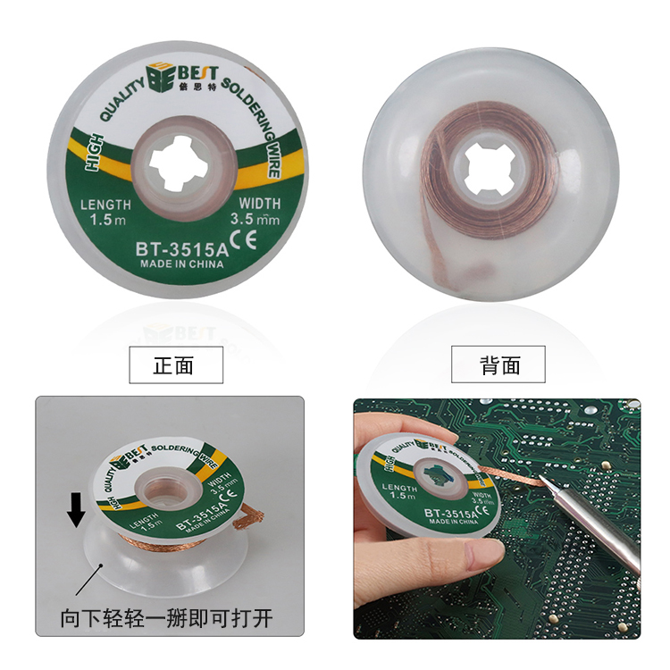 返回當(dāng)前位置: 首頁(yè) / 產(chǎn)品中心 / BST-3515A 吸錫線 非鹵素低殘?jiān)馇逑次a帶 清理焊盤(pán)必備