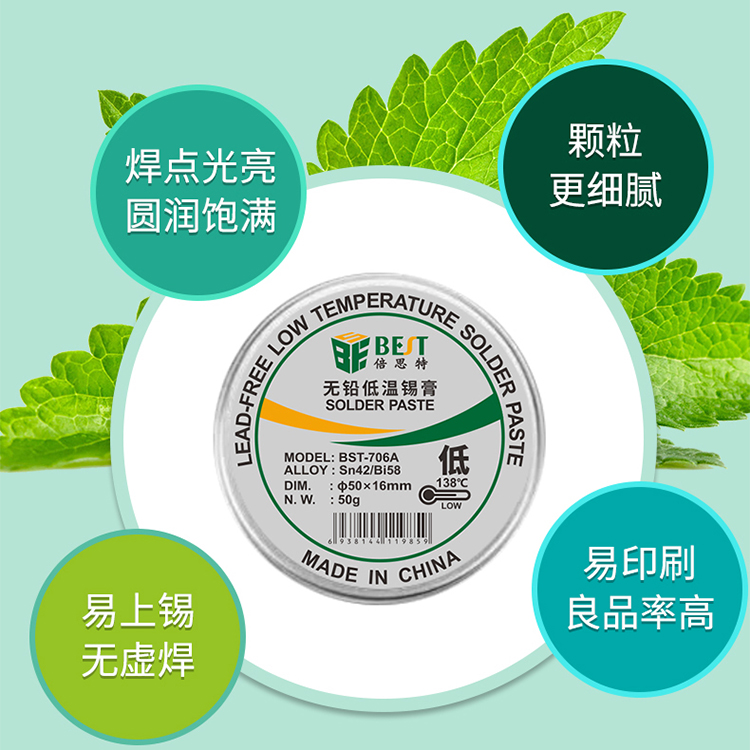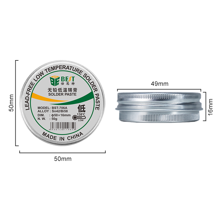 返回當前位置: 首頁 / 產品中心 / BST-706A 無鉛低溫錫膏 Sn42/Bi58 鋁罐BGA植錫膏50g