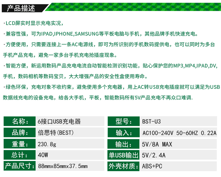 返回當前位置: 首頁 / 產(chǎn)品中心 / BST-U3 6接口USB智能充電器