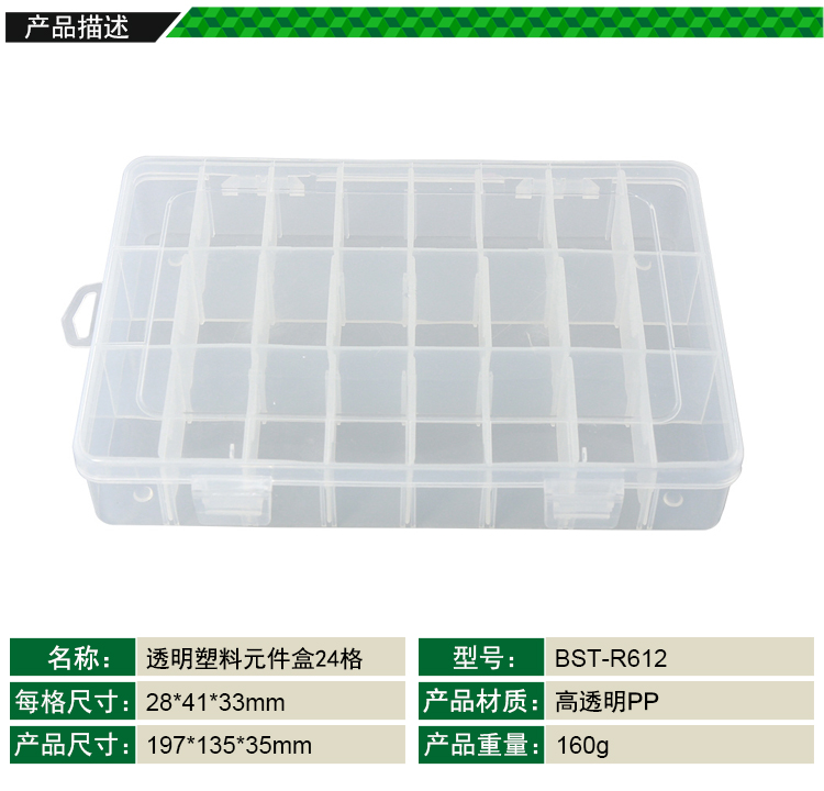 ? 產品名稱: 24格透明塑料元件盒? 產品型號: BST-R612? 產品類別: 元件盒系列