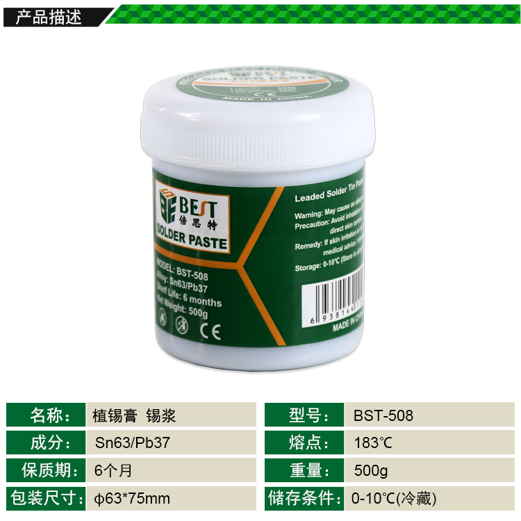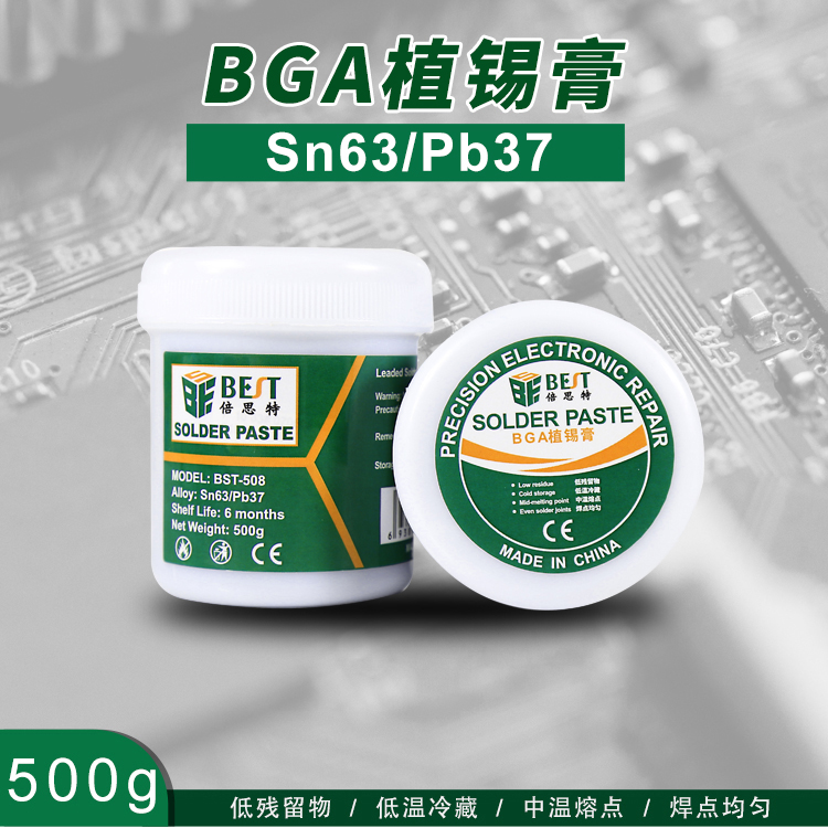 返回當(dāng)前位置: 首頁 / 產(chǎn)品中心 / BST-508 錫漿 中溫含鉛錫膏 BGA植錫膏 Sn63/Pb37 500g