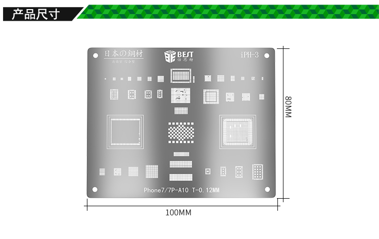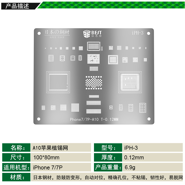 返回當(dāng)前位置: 首頁 / 產(chǎn)品中心 / iPH-3 iPhone 7/7P-A10 BGA植錫網(wǎng) 多用植錫方孔定位鋼網(wǎng) 植錫卡