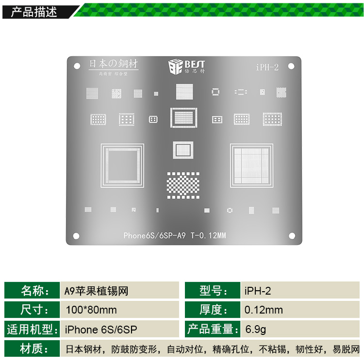返回當(dāng)前位置: 首頁 / 產(chǎn)品中心 / iPH-2 iPhone 6S/6SP-A9 BGA植錫網(wǎng) 多用植錫方孔定位鋼網(wǎng) 植錫卡