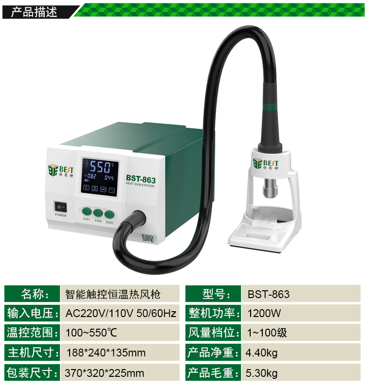 返回當(dāng)前位置: 首頁 / 產(chǎn)品中心 / BST-863 智能數(shù)顯觸控恒溫?zé)犸L(fēng)槍 無鉛調(diào)溫?cái)?shù)顯拆焊熱風(fēng)槍 1200W
