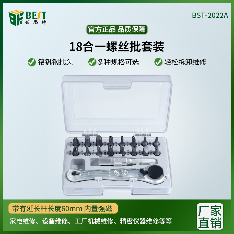 返回當(dāng)前位置: 首頁 / 產(chǎn)品中心 / BST-2022A 雙向棘輪18合一螺絲批套裝