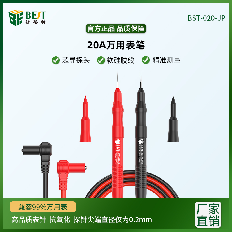 BST-020-JP 超導(dǎo)細(xì)尖表筆 萬(wàn)用表表筆線 特尖鋼針 防燙防凍硅膠線 2000V20A大電流