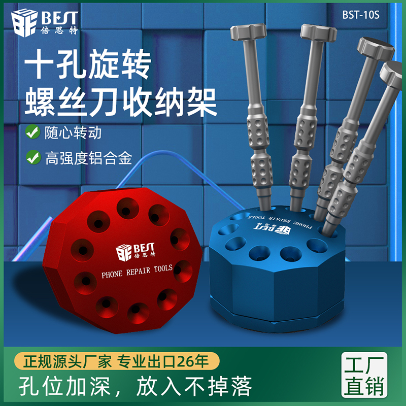 BST-10S 螺絲刀鋁合金底座收納架 手機(jī)維修工具便攜收納盒 鋁合金旋轉(zhuǎn)底座 螺絲刀刻刀鑷子收納架